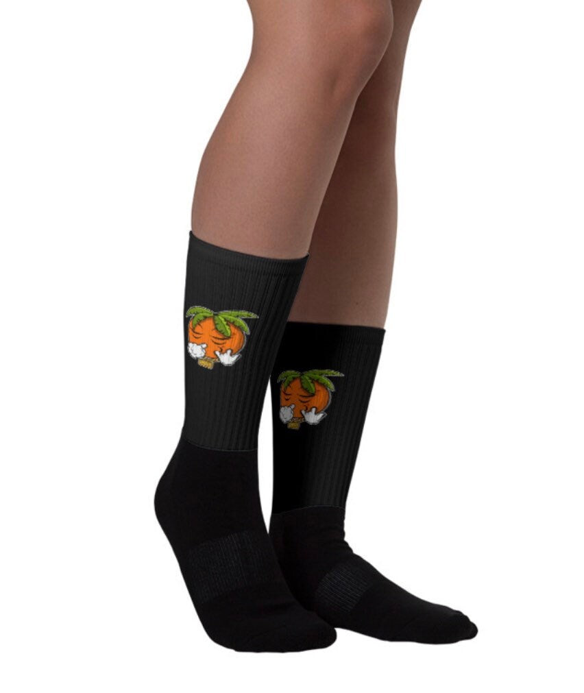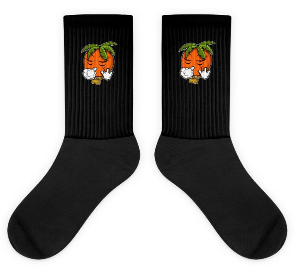 Enjoy these fresh, black socks with our Smokephi Original Orange logo on them. The logo is on the left and right side of the sock. Our socks are made through sublimated fabric material, and they’re good for casual, formal and athletic wear.
