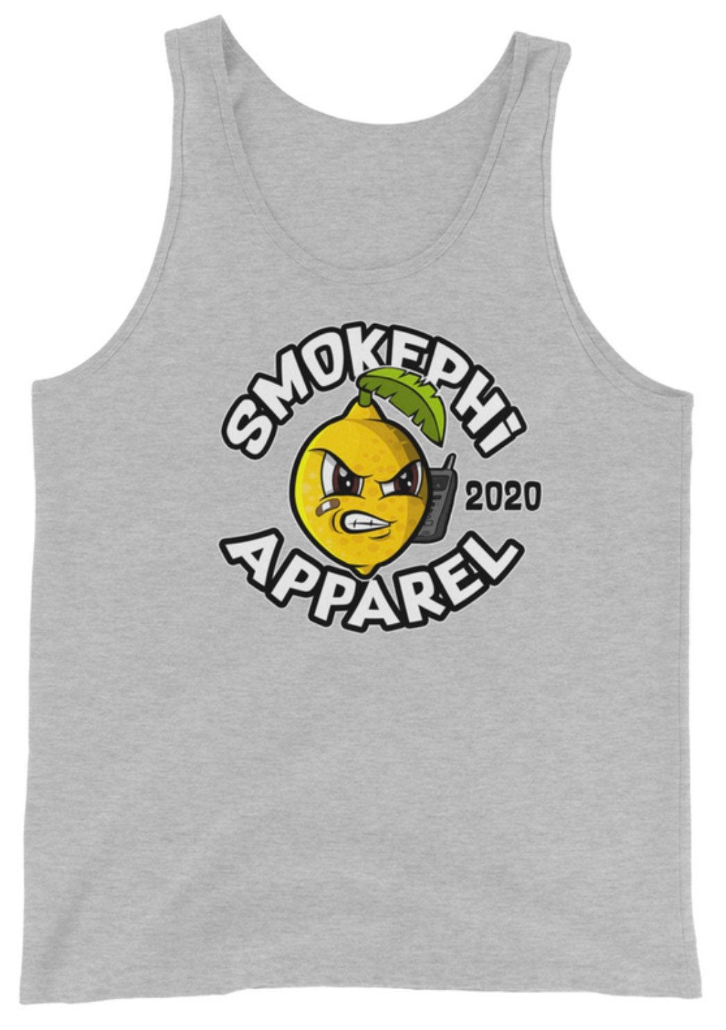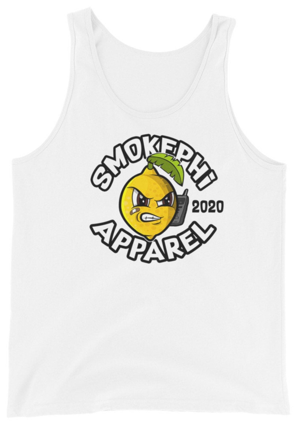 Enjoy this fresh white/black/gray graphic, tank tee with our Original Lemon logo. The logo is big in the center area on the front of the tank.