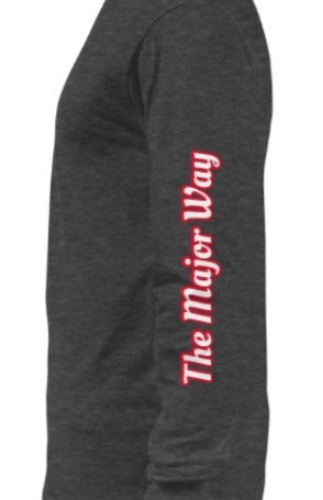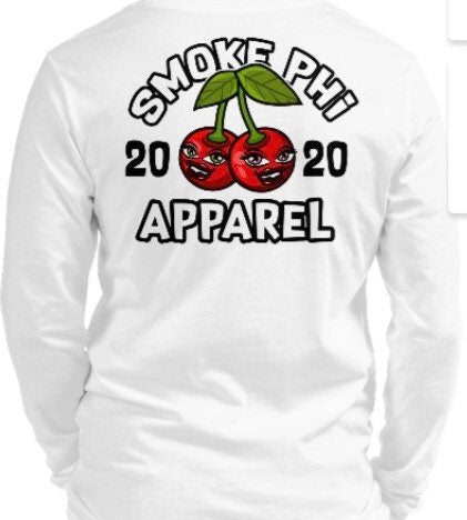 Enjoy this fresh, white/black/smoke gray/gray graphic long sleeve tee with our Smokephi For Her Cherry logo. The logo is small in the top left area on the front of the shirt, and larger in the center area on the back of the shirt with our “Smokephi Apparel” branding phrase surrounding the cherry. The phrase “The Major Way” (in red & white) runs up the left sleeve.